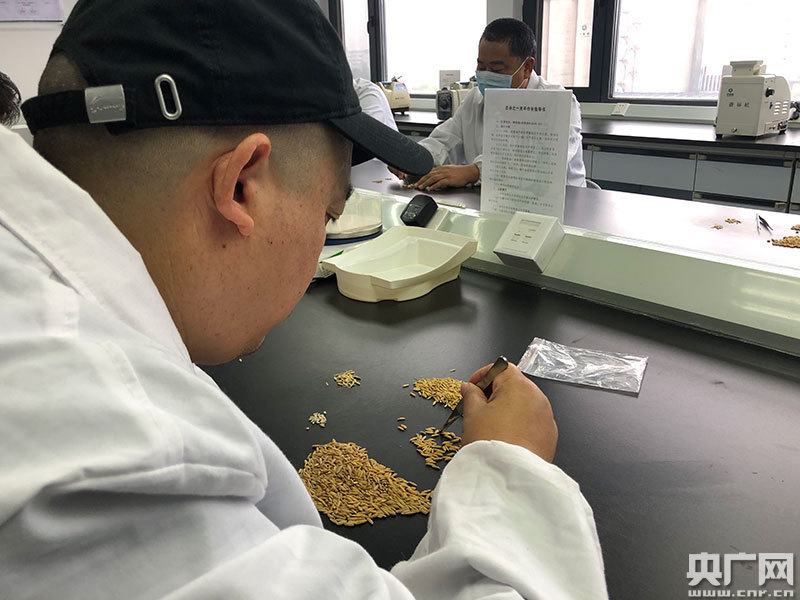 現(xiàn)場(chǎng)工作人員進(jìn)行糧食安全檢測(cè)(央廣網(wǎng)發(fā) 記者胡斐 攝)