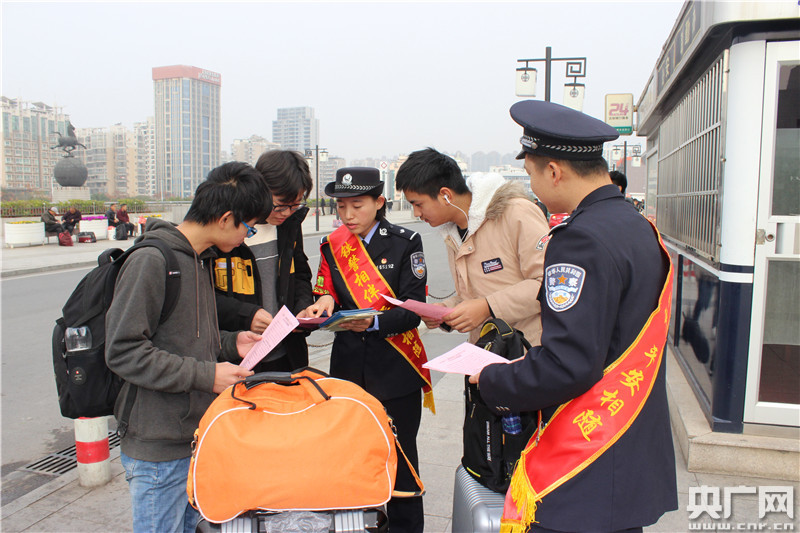 隨著昌贛高鐵的開(kāi)通,管內(nèi)春運(yùn)客流將呈現(xiàn)明顯增長(zhǎng)態(tài)勢(shì),鐵路警方在管內(nèi)贛州站、贛州西站、吉安站、瑞金站、于都站、贛縣北站、興國(guó)站、泰和站、萬(wàn)安縣站、井岡山站等火車(chē)站,設(shè)置宣傳展臺(tái)、發(fā)放宣傳資料,進(jìn)行了防扒防騙宣傳,現(xiàn)場(chǎng)發(fā)放印有防扒防騙提示和列車(chē)時(shí)刻表的宣傳單,讓旅客“少被偷、少上當(dāng)”,講解了春運(yùn)期間應(yīng)當(dāng)注意的相關(guān)法律法規(guī),提醒旅客出行期間嚴(yán)禁攜帶各類(lèi)違禁品,和諧有序乘車(chē)出行,切勿“霸座”以及在動(dòng)車(chē)上吸煙等。同時(shí),開(kāi)展反扒演示、禁限帶違禁品等多種形式的現(xiàn)場(chǎng)演示,將防偷盜、購(gòu)票安全常識(shí)、乘車(chē)安全防范等知識(shí)融進(jìn)演示里,并安排體驗(yàn)式互動(dòng)環(huán)節(jié),通過(guò)民警與群眾現(xiàn)場(chǎng)互動(dòng),讓旅客群眾進(jìn)一步了解春運(yùn)安全乘車(chē)相關(guān)知識(shí)。