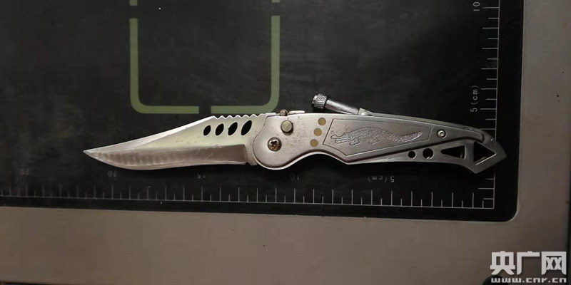 從監(jiān)控畫面可以看到當(dāng)時(shí)安檢員讓這名乘客從包內(nèi)找出這個(gè)刀具,但該旅客翻了下挎包,卻沒有找到安檢員所稱的刀,于是安檢員讓這名旅客重新把挎包過下安檢儀,最后在這名旅客的黑色挎包的底部破洞里找到了這把刀,于是立即向現(xiàn)場(chǎng)執(zhí)勤民警報(bào)告,隨后,執(zhí)勤民警將該男子帶到車站執(zhí)勤室做進(jìn)一步調(diào)查。