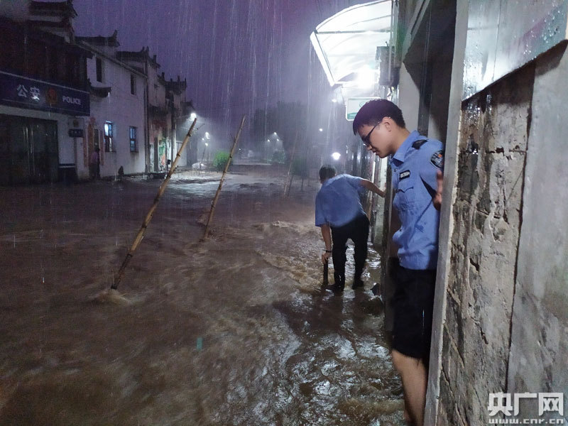 當(dāng)晚7時(shí)許,沱川鄉(xiāng)的強(qiáng)降雨已持續(xù)了4個(gè)多小時(shí),洪水造成理坑村及沿河村落被淹,村下村敬老院附近電箱損壞,學(xué)校空地被淹沒(méi)。面對(duì)突發(fā)的災(zāi)情,沱川派出所立即啟動(dòng)防汛處置應(yīng)急預(yù)案,調(diào)集全部警力,所長(zhǎng)張小波帶隊(duì),奔赴災(zāi)區(qū),疏通水毀道路、搶救受災(zāi)財(cái)物、轉(zhuǎn)移被困群眾。