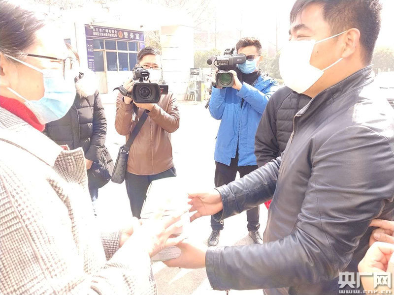 習(xí)慣了把話筒和目光聚焦在他人身上的記者們分外感動。九江廣播電視臺公共頻道的記者郭翔,是位80后奶爸。疫情發(fā)生后,一天也沒休息,一直在一線采訪。他說:“首先是非常感謝九江市果品流通協(xié)會來慰問我們廣電一線記者,作為一線記者我心里感到非常暖心,然后在接下來的工作當(dāng)中我們也會第一時(shí)間將疫情的防治這些新聞都及時(shí)報(bào)道回來,我們也會加油努力”。