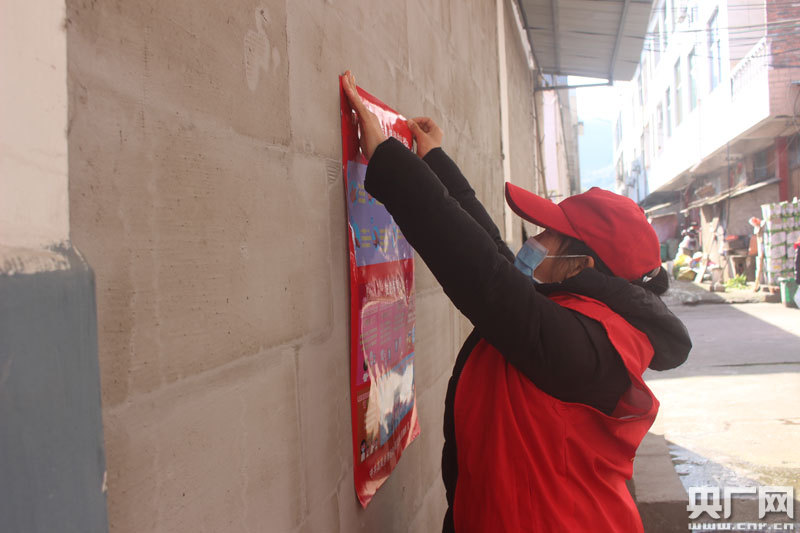 下午2點40分,她帶著隊伍參與到疫情防控,發(fā)宣傳資料,貼防疫海報,號召村民不要聚眾,一支飽含著青春力量的“防疫青年軍”穿梭在高嵐鄉(xiāng)的大街小巷。