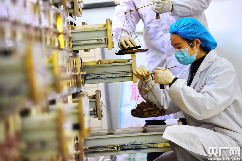 央廣網(wǎng)會昌2月20日消息(記者胡斐 通訊員朱海鵬)2020年2月20日,江西省贛州市會昌縣中醫(yī)院配藥房,藥師正在配藥。