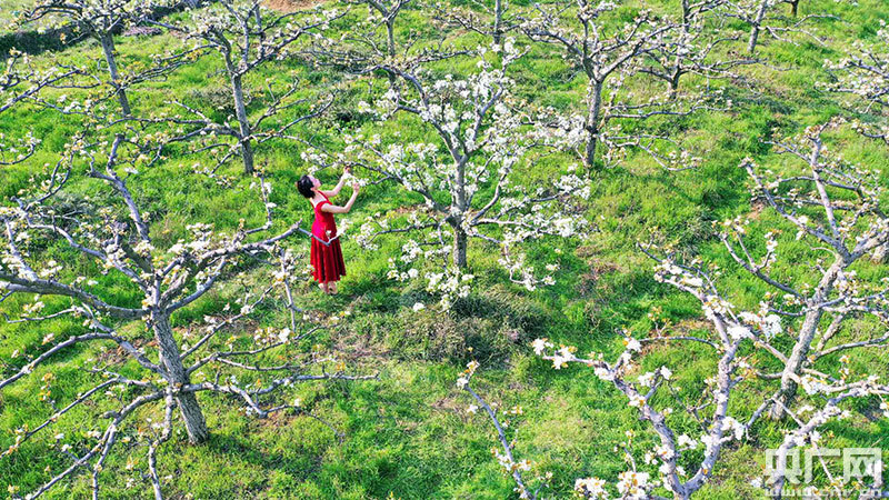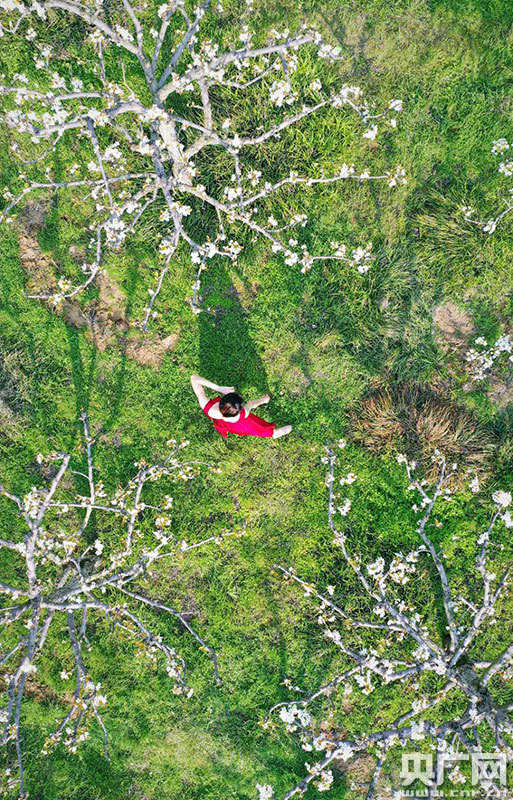 陽春三月梨花開,微風徐徐、花海爛漫。3月20日,在江西省吉安市吉水縣的低坪村“花果世界”,這里的百畝梨花競相綻放,一位舞蹈愛好者在梨花林里,翩翩起舞,猶如春天里的芭蕾,紅裙、絢爛的花海與綠草藍天相互映襯,組成一幅寧靜恬淡的田園畫卷。
