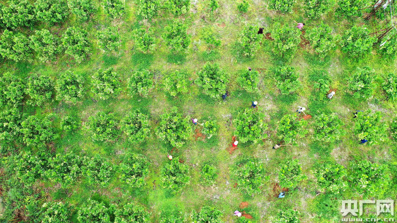 4月22日,江西省吉安市吉水縣白水鎮(zhèn)墾殖場(chǎng)二分場(chǎng)井岡蜜柚基地柚花盛開,果農(nóng)們?cè)跒榫畬坭謽浼糁Γ,確保不誤農(nóng)時(shí)、不影響果品生長(zhǎng),實(shí)現(xiàn)果業(yè)豐產(chǎn)豐收。