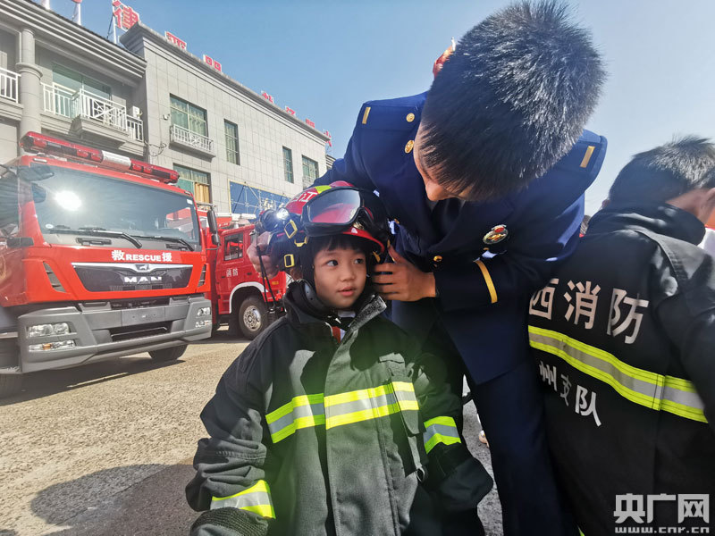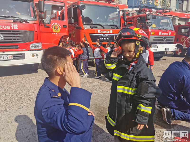 穿上消防服,長大我也要當消防員(央廣網(wǎng)發(fā) 通訊員供圖)