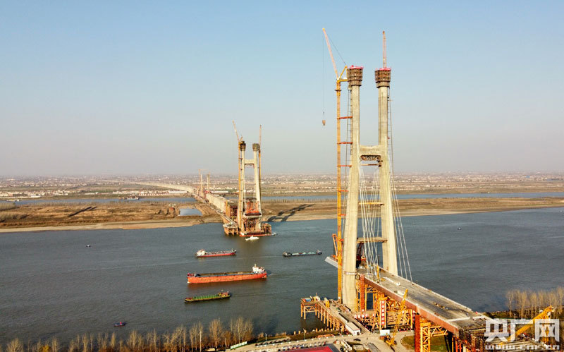 此次封頂?shù)?號(hào)墩主塔位于九江側(cè)永安堤防護(hù)堤邊坡上,為H型結(jié)構(gòu),高達(dá)242米,相當(dāng)于80層樓房高。采用液壓爬模分段施工,塔柱共41個(gè)節(jié)段,混凝土澆筑總方量為3.17萬立方米。