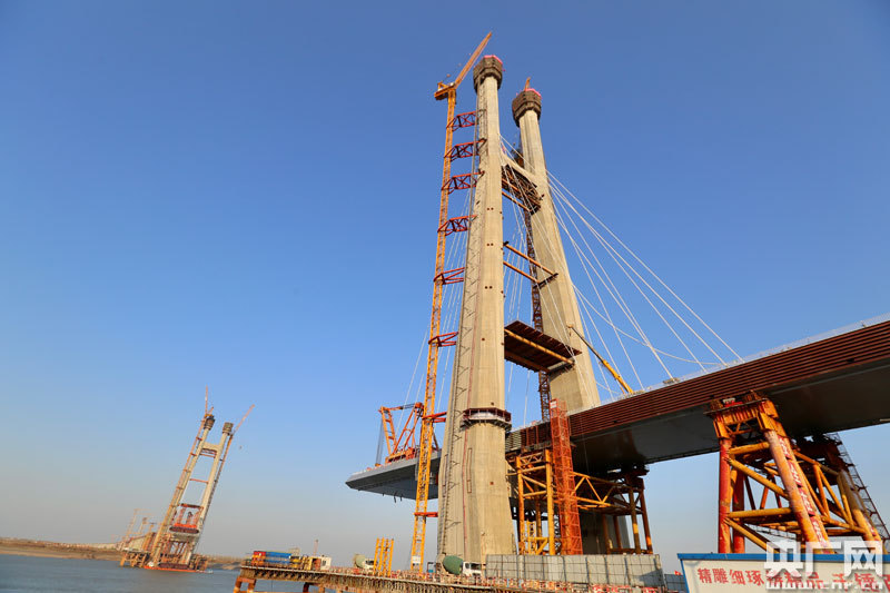 鳊魚洲長(zhǎng)江大橋主橋首個(gè)主塔封頂(央廣網(wǎng)發(fā) 通訊員供圖)