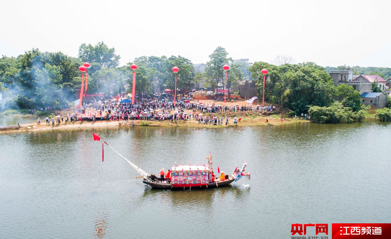 6月14日,在江西都昌縣南峰鎮(zhèn)白水村,民間藝人在龍船上表演龍船調(diào)。