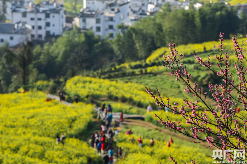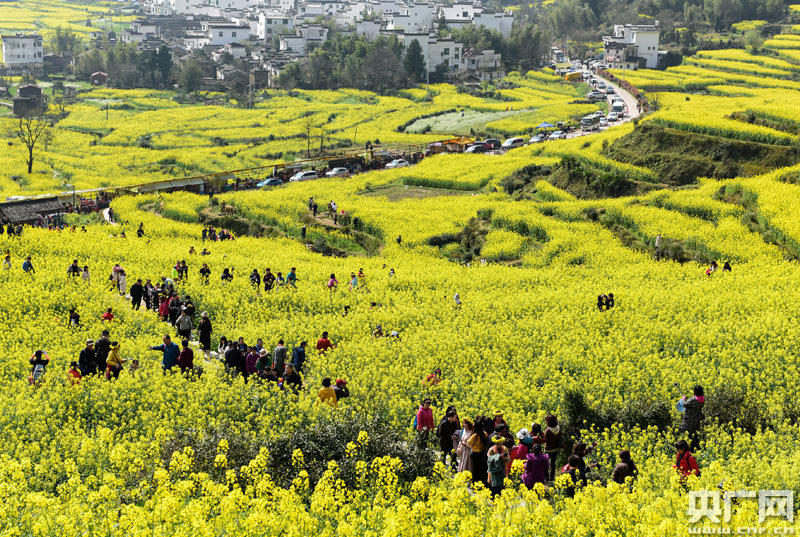 陽春三月,春暖花開,江西婺源縣全境12萬畝油菜花迎來盛花期,漫山遍野的油菜花、層層疊疊梯田與粉墻黛瓦的徽派民居相互輝映,吸引大批游客前來踏青賞花。僅23日,婺源縣迎來游客28.2萬人次,刷新單日游客量紀錄。(央廣網(wǎng)發(fā) 通訊員胡敦煌 攝)
