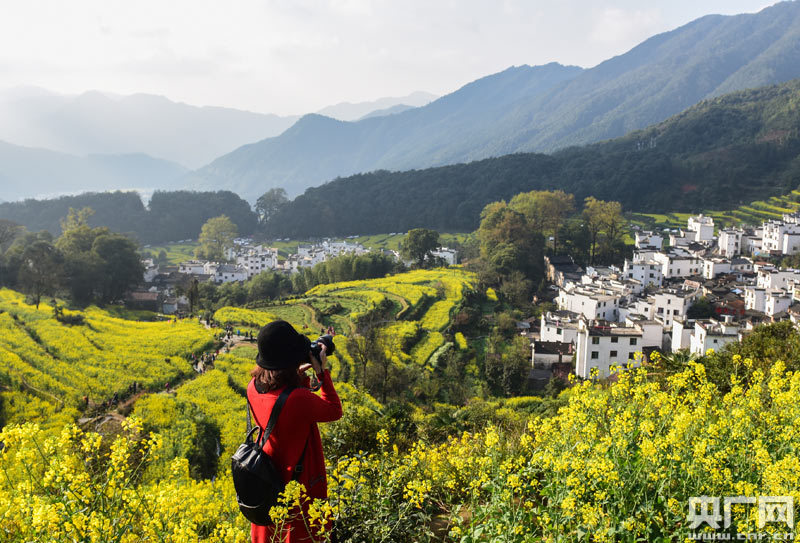 陽春三月,春暖花開,江西婺源縣全境12萬畝油菜花迎來盛花期,漫山遍野的油菜花、層層疊疊梯田與粉墻黛瓦的徽派民居相互輝映,吸引大批游客前來踏青賞花