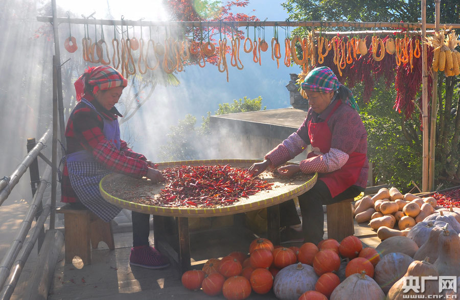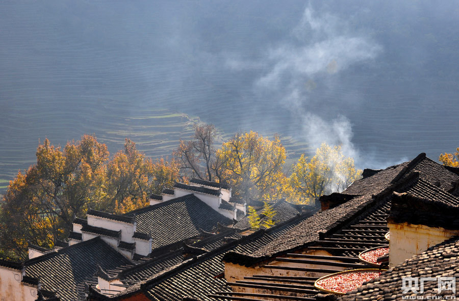 進(jìn)入大雪節(jié)氣,江西省婺源縣江灣鎮(zhèn)篁嶺村紅楓、銀杏與徽派民居交相輝映,色彩斑斕的曬秋人家掩映在濃濃的秋色之中,構(gòu)成一幅美麗多彩的山村畫卷。近六百歷史的篁嶺屬典型山居村落,上百棟徽派古民居圍繞水口呈扇形梯狀錯落排布,楓葉紅得比附近村莊晚。(央廣網(wǎng)發(fā) 通訊員 胡敦煌 攝)