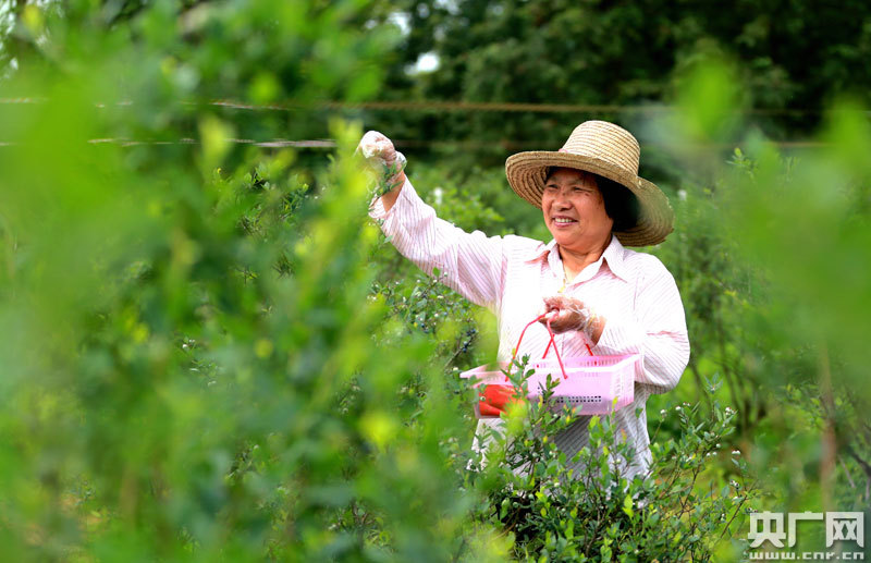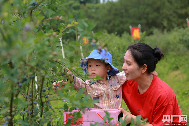 游客正在體驗農(nóng)家樂生活采摘藍莓