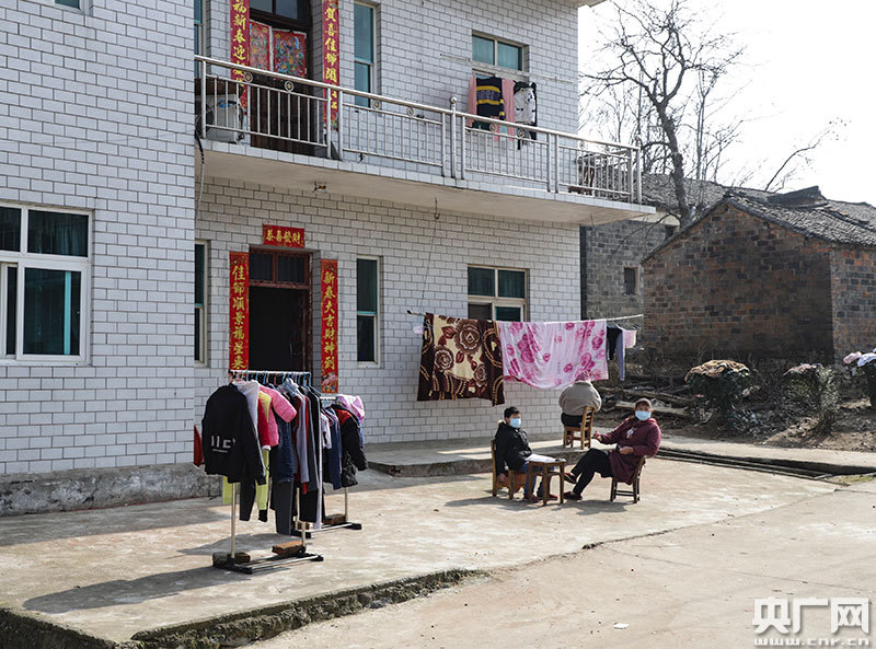 經值守人員同意,記者隨同村組長進入村中。村莊近50戶呈“n”型繞池塘而建,村民有的在塘邊洗衣物,有的在自家門口曬太陽,有的在輔導孩子看書做作業(yè)……住在村口的沈紅靜一家正在吃午飯,衣服被子曬了一稻場!白蛱焱砩辖与娫捊拥绞c多,都是沖著謠言來的,真的希望大家別信謠,更不要造謠!”攀談中,沈紅靜告訴記者。