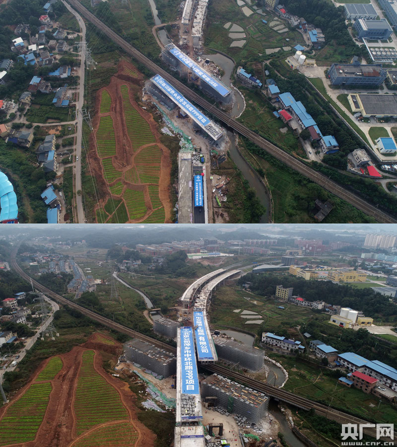 央廣網(wǎng)南昌10月14日消息(記者王一凡 通訊員王文玉 李蕾)10月14日上午10點10分,經(jīng)過90分鐘雙幅不對稱梁體順時針47度“空中飛越”,江西省最大噸位(2萬噸)公跨鐵轉(zhuǎn)體橋進(jìn)行了華麗“轉(zhuǎn)身”,向年底通車邁出關(guān)鍵一步。