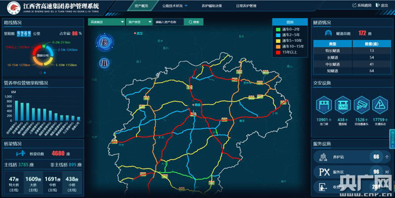 央廣網(wǎng)南昌11月5日消息(記者謝元森 通訊員金楊柳 吁新華)日前,江西高速集團(tuán)養(yǎng)護(hù)管理系統(tǒng)一期工程完工,該系統(tǒng)將實(shí)現(xiàn)對(duì)全省高速公路狀況全面感知、基礎(chǔ)信息管理、科學(xué)分析與決策等功能,成為江西高速養(yǎng)護(hù)管理的“智慧大腦”。