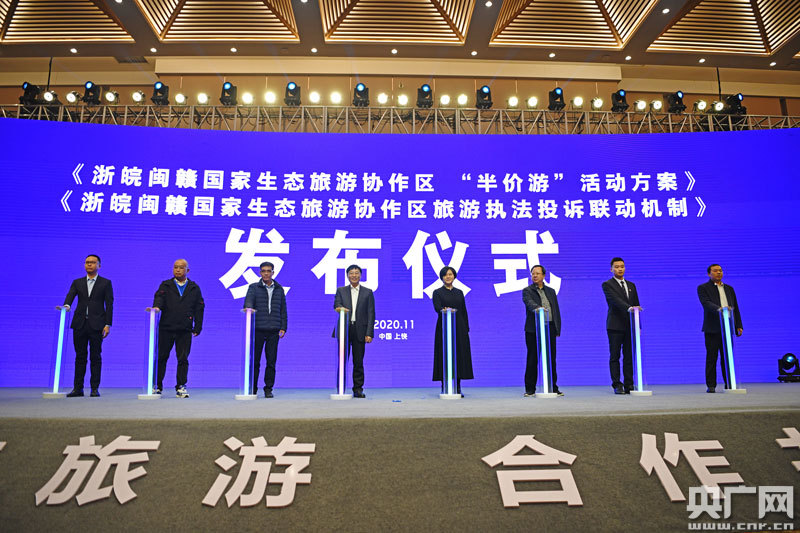 央廣網(wǎng)上饒12月1日消息(記者王一凡)為加強(qiáng)區(qū)域合作,共同推動(dòng)浙皖閩贛生態(tài)旅游高質(zhì)量發(fā)展,11月30日,2020浙皖閩贛國(guó)家生態(tài)旅游協(xié)作區(qū)推進(jìn)會(huì)在江西上饒鉛山舉行。會(huì)上,四省聯(lián)合發(fā)布了《浙皖閩贛國(guó)家生態(tài)旅游協(xié)作區(qū)“半價(jià)游”合作協(xié)議》,活動(dòng)期間,浙皖閩贛國(guó)家生態(tài)旅游協(xié)作區(qū)居民享受門票半價(jià)政策。