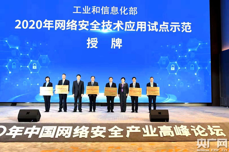 2020中國網(wǎng)絡安全產(chǎn)業(yè)高峰論壇上對網(wǎng)絡安全技術(shù) 應用試點示范進行授牌