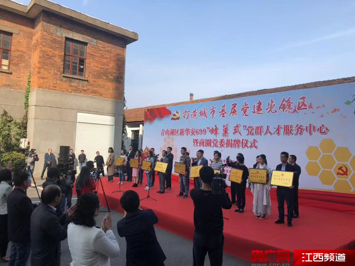 央廣網(wǎng)南昌10月18日消息(通訊員鐘顥)10月18日上午,江西省首家“黨建+人才”服務中心——新華安699“蜂巢式”黨群人才服務中心在青山湖區(qū)699文化創(chuàng)意產(chǎn)業(yè)園正式揭牌成立。