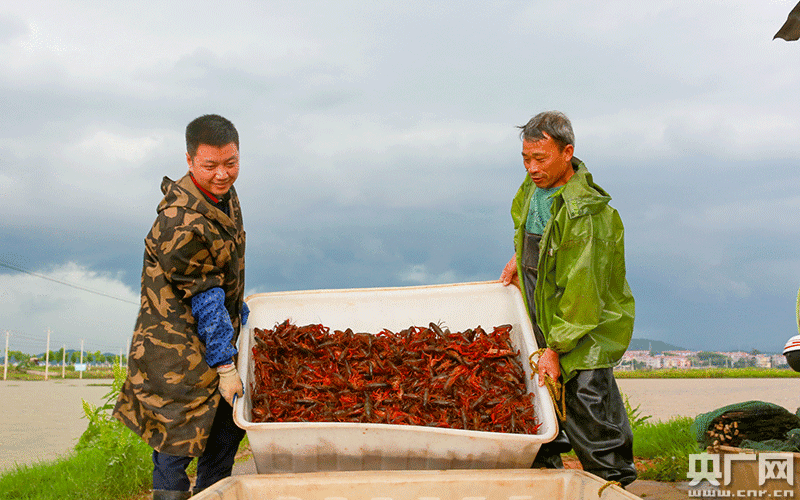 江西省吉安市吉水縣醪橋鎮(zhèn)元石村稻蝦共作基地,村民正在分揀小龍蝦