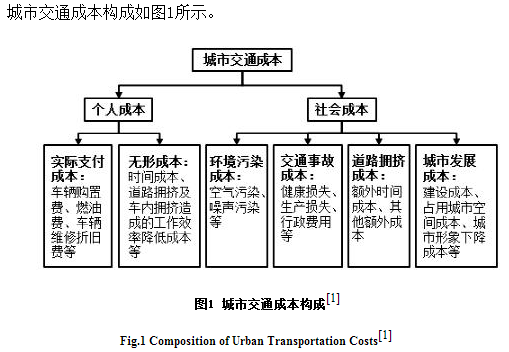 其中,公共交通與小汽車交通出行成本的直接表現(xiàn)形式有所不同,公共交通的直接出行成本以票價的形式體現(xiàn),而小汽車交通的直接出行成本則略為復(fù)雜,包括車輛購置費、燃油費、車輛保養(yǎng)費等。此外,無論是公共交通還是小汽車交通,其個人承擔(dān)的出行成本除了以直接的貨幣形式表現(xiàn)的部分外,還包括無形的成本,如出行時間成本、車內(nèi)擁擠造成的工作效率降低成本等。