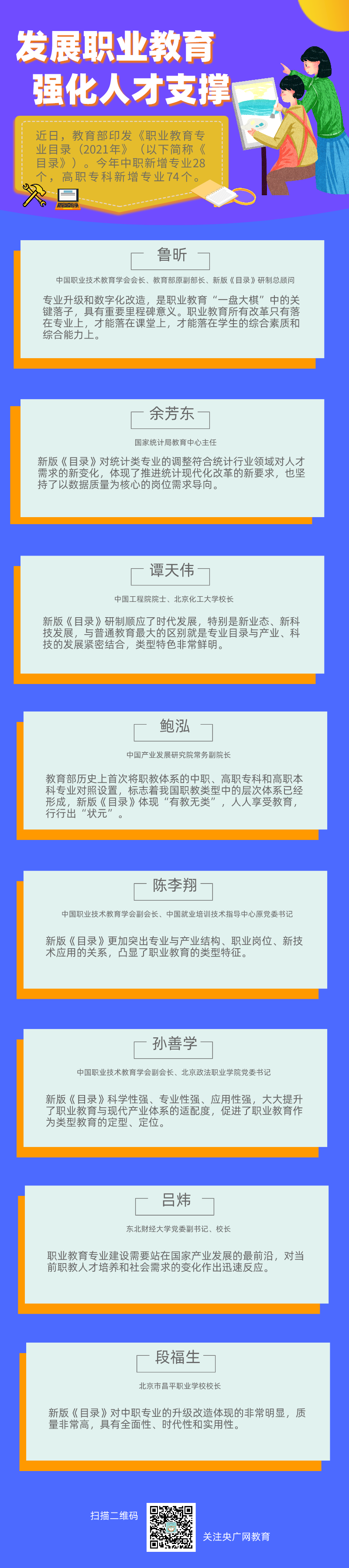 新版《目錄》分體現(xiàn)了專業(yè)升級和數(shù)字化改造理念,專業(yè)名稱等體現(xiàn)了政治性、科學(xué)性和規(guī)范性的有機統(tǒng)一,為提高職業(yè)教育適應(yīng)性、服務(wù)技能型社會建設(shè)和終身學(xué)習需求奠定了新基礎(chǔ)、樹立了新坐標。