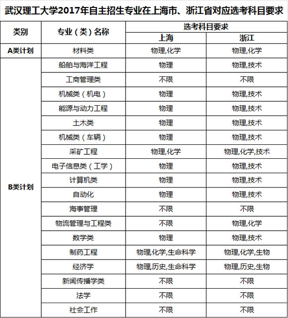 上海市、浙江省考生選考科目應(yīng)和我校公布的2017年同類專業(yè)(類)選考科目范圍相同,具體選考科目要求見附件一。