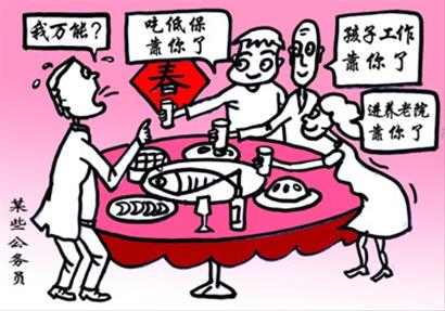我生在上海農(nóng)村。春節(jié)家庭聚會上,長輩、平輩、小輩都來敬酒,一邊勸酒一邊托辦事,問能不能解決孩子工作、同事的朋友想吃低保、丈母娘想插隊進養(yǎng)老院,等等。我哪能辦成這些事?可一向親戚們解釋“公務員不是萬金油”時,就會引來誤解。