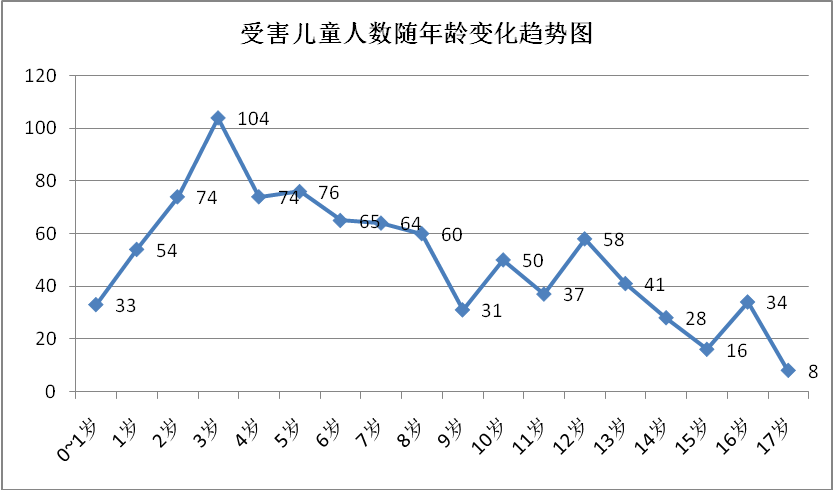受害兒童人數(shù)隨年齡變化趨勢圖