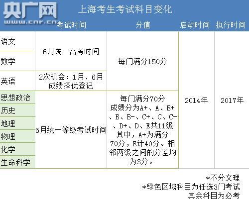 據(jù)悉,2017年起,上海考生將采取3+3模式,即高考3門學(xué)業(yè)等級考3門累加作為最好報考高校的總成績,學(xué)生可從思想政治、歷史、地理、物理、化學(xué)、生命科學(xué)等6門學(xué)科任選3門參加高考。