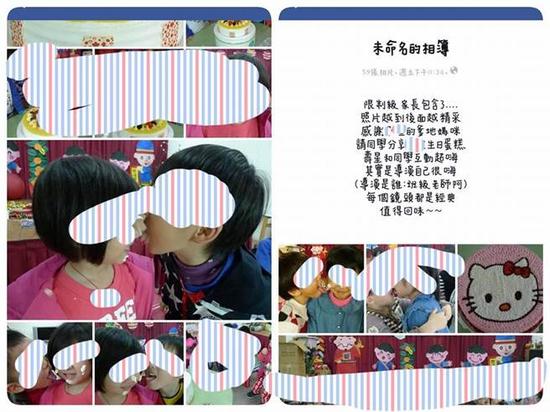 幼兒園臉書也被網(wǎng)友翻出,發(fā)現(xiàn)這種舌舔奶油慶生不只一次,且照片都設(shè)公開。還有網(wǎng)友貼出一位男童生日,身邊簇?fù)碇姸嗯瑢W(xué),臉上都是紅色口紅印的照片。