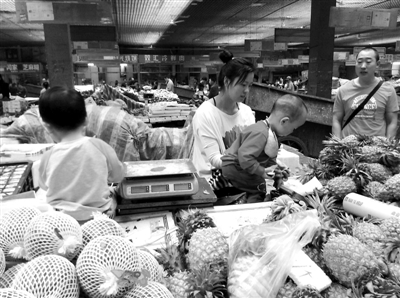 在新民菜市場,其他菜販的還未到上學(xué)年紀(jì)的孩子在李霞的攤位上嬉戲。