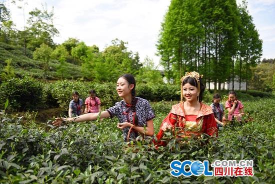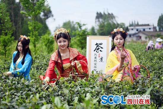 關(guān)鍵詞:采茶;蒙頂山;抗壓力;唐裝;采摘