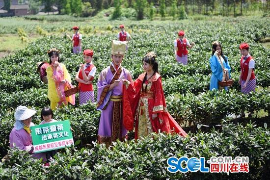 四川在線消息(四川在線記者 楊德)最美人間四月天,采茶賞花春色俏。28日,雅安蒙頂山的皇茶貢茶地里,一群穿著唐裝、空姐服——畢業(yè)于成都東星航空專修學(xué)院的空姐,和當(dāng)?shù)氐牟柁r(nóng)進(jìn)行了一次“親密接觸”,學(xué)采茶,感受茶文化的魅力。體驗(yàn)勞動的艱辛,培養(yǎng)以后在飛行工作崗位上的抗壓力和忍耐力。