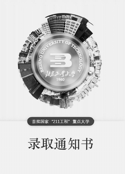 北京工業(yè)大學(xué)今年專(zhuān)門(mén)請(qǐng)來(lái)該校工業(yè)設(shè)計(jì)專(zhuān)業(yè)學(xué)生設(shè)計(jì)通知書(shū)。在通知書(shū)封套正面,北工大的科學(xué)樓、第二教學(xué)樓、圖書(shū)館等標(biāo)志性建筑圍繞;粘蕡A形排列,遠(yuǎn)遠(yuǎn)看去,猶如盛放的花朵,底紋則是北工大藍(lán)顏色的豎條紋,看上去端莊素雅。今年校園開(kāi)放日期間,北工大還組織了“VIP家長(zhǎng)團(tuán)”,邀請(qǐng)前來(lái)參觀的家長(zhǎng)為自己的孩子寫(xiě)封信留在招辦。如果孩子成功考上北工大,這封信將連同錄取通知書(shū)一同寄出,成為他考上大學(xué)后的第一封家書(shū)。