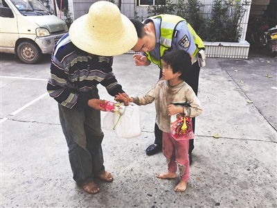 交警張晉彬?qū)⑿∨⑺突丶?/p>