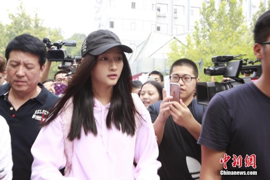 9月4日,“國民閨女”關(guān)曉彤身穿一襲粉色帽衫,現(xiàn)身北京電影學(xué)院報(bào)到,遭媒體圍堵。 中新網(wǎng)記者 翟璐 攝