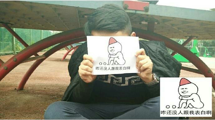 男生帶表情包游走校園 訴說單身心酸