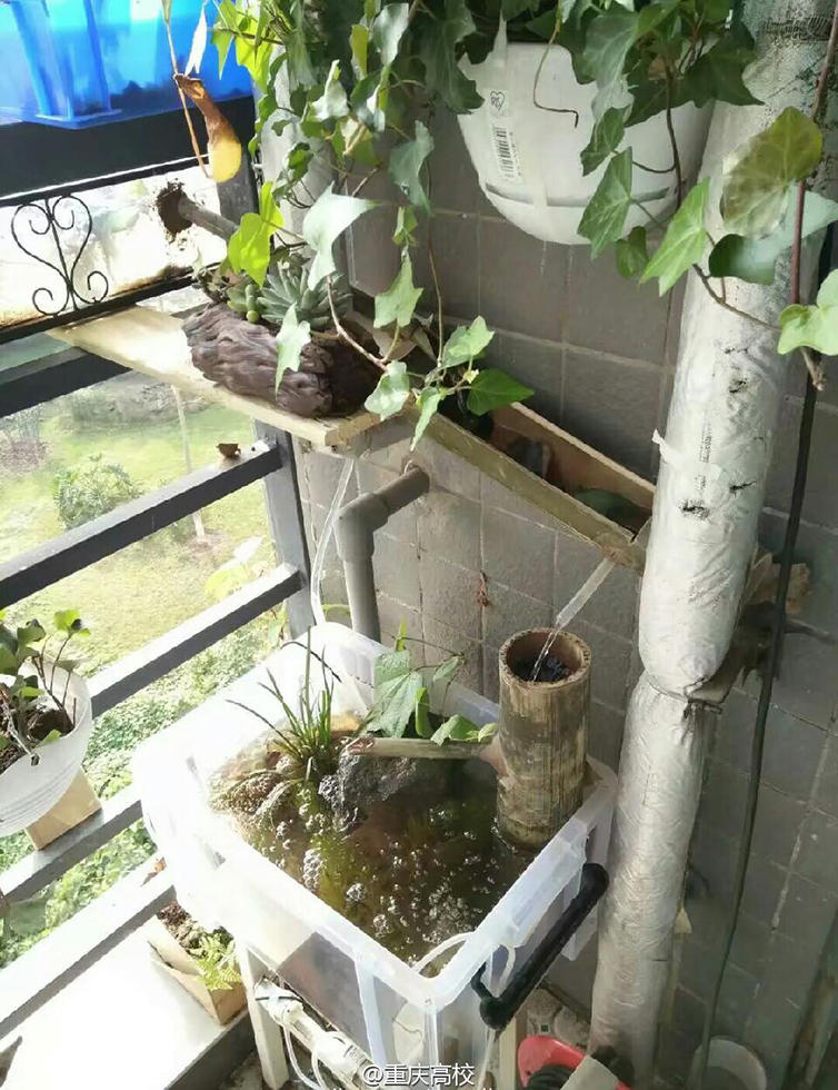據(jù)網(wǎng)友爆料,重慶電子工程職業(yè)學(xué)院的一名同學(xué)在宿舍搞起了水產(chǎn)工程,整個(gè)陽臺(tái)擺滿了綠植、水草、玻璃缸,還有兩只烏龜,陽臺(tái)一秒變花園,網(wǎng)友感嘆:這是要構(gòu)建一個(gè)小型生態(tài)系統(tǒng)。
