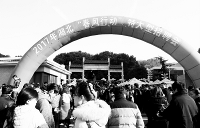 昨天上午,暖陽(yáng)照耀下的武昌丁字橋施洋公園內(nèi)人頭攢動(dòng),近萬(wàn)求職者擠爆2017湖北省春風(fēng)行動(dòng)大型招聘會(huì)現(xiàn)場(chǎng)。繼農(nóng)民工正月初八就返漢搶?shí)徍螅髮W(xué)生求職者正月十五開(kāi)始涌現(xiàn)。