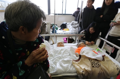 “孩子營(yíng)養(yǎng)不良,沒(méi)有血色!蓖蹼p的朋友圈描述說(shuō),老人年紀(jì)大,只能一個(gè)一個(gè)抱,孩子長(zhǎng)期睡著,頭都變形了。熬了一個(gè)通宵的老人,白天扛不住睡著了,連續(xù)三次孩子輸液沒(méi)有液體了,都是自己家人發(fā)現(xiàn)提醒。王雙在朋友圈呼吁,能不能幫忙請(qǐng)個(gè)護(hù)工。