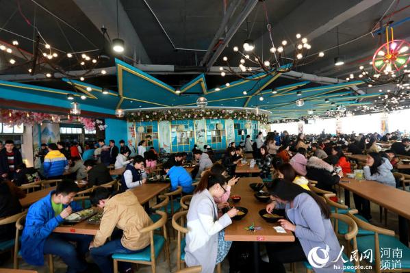 人民網(wǎng)鄭州2月27日電 (霍亞平)新學(xué)期開學(xué),鄭州華北水利水電學(xué)校的學(xué)生們發(fā)現(xiàn),學(xué)校食堂發(fā)生了巨大變化,曾經(jīng)冷冷清清的餐廳如今卻人頭攢動(dòng),熱鬧非凡。