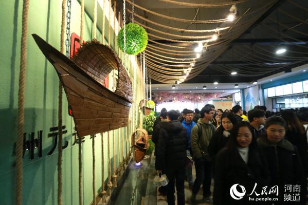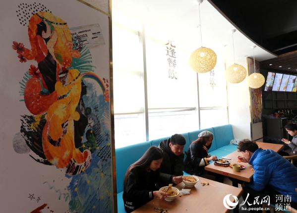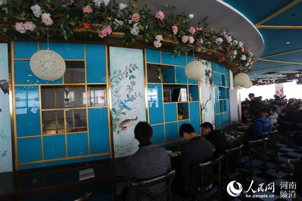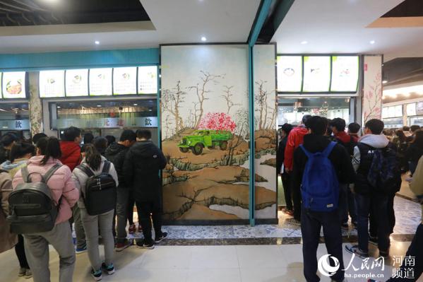 2月26日,在河南鄭州華北水利水電大學(xué),記者看到,學(xué)生們排隊(duì)在裝扮一新的學(xué)校食堂里就餐。曾經(jīng)的硬座桌凳換成了軟座桌椅,屋頂以星空為主題背景,獨(dú)特的燈飾造型,十二星座圖案,山水、動(dòng)物、人物繪畫,池塘里游來游去的金魚、蓮藕將環(huán)境布置的十分溫馨、雅致,炫美。