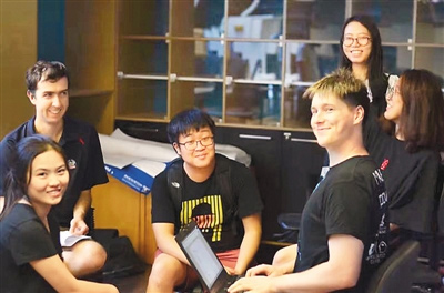 圖為馬素湘(左前)和同學(xué)在交流 羅德里攝