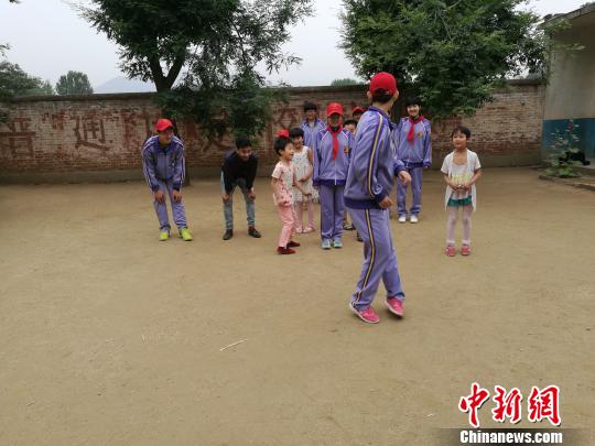 圖為石家莊市第四十二中師生與任家莊小學(xué)的學(xué)生一起做游戲!±钛蟆z