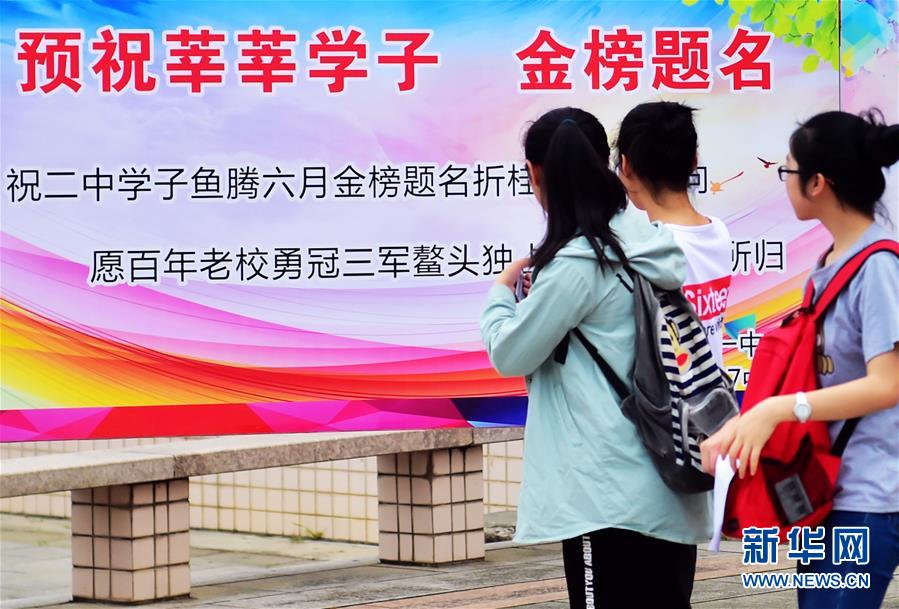 6月6日,福建莆田第二中學(xué)的高考考生在閱讀學(xué)校送出的高考祝愿。當(dāng)日,記者從教育部獲悉,2017年全國統(tǒng)一高考將于6月7日至8日進(jìn)行,部分省(區(qū)、市)由于考試科目設(shè)置不同,9日仍安排有考試科目。今年全國高考報(bào)名考生共940萬人。新華社記者 魏培全 攝 -