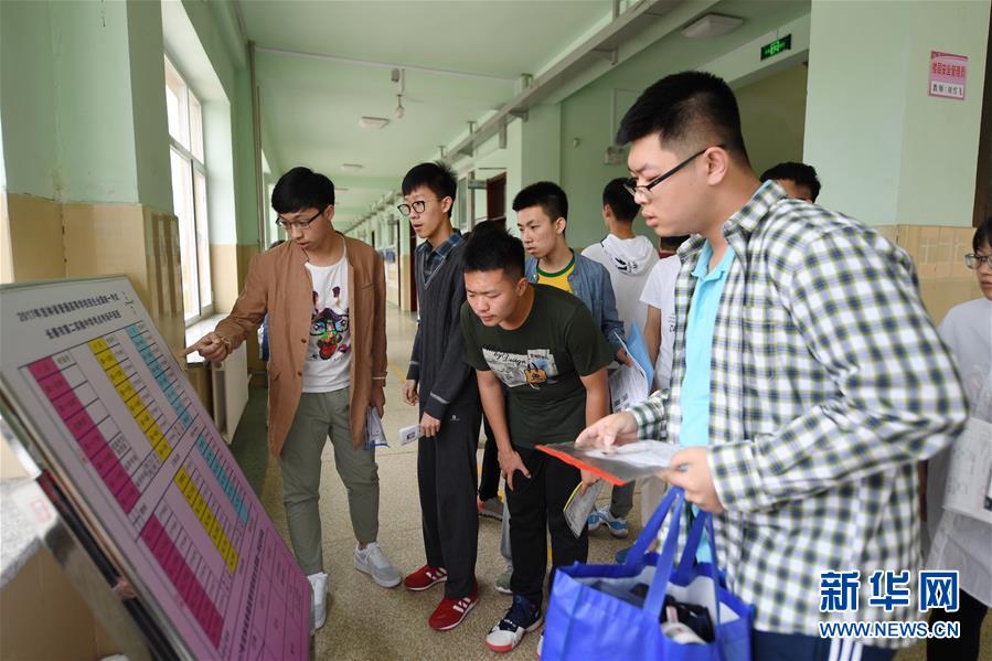 6月6日,考生在吉林長(zhǎng)春第二實(shí)驗(yàn)中學(xué)考點(diǎn)查看考場(chǎng)分布。當(dāng)日,記者從教育部獲悉,2017年全國統(tǒng)一高考將于6月7日至8日進(jìn)行,部分。▍^(qū)、市)由于考試科目設(shè)置不同,9日仍安排有考試科目。今年全國高考報(bào)名考生共940萬人。新華社記者 張楠 攝 -