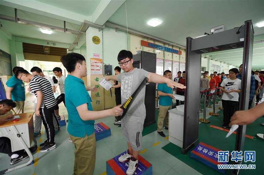 6月6日,在吉林長(zhǎng)春第二實(shí)驗(yàn)中學(xué)考點(diǎn),工作人員對(duì)前來查看考場(chǎng)的考生進(jìn)行安檢。當(dāng)日,記者從教育部獲悉,2017年全國統(tǒng)一高考將于6月7日至8日進(jìn)行,部分。▍^(qū)、市)由于考試科目設(shè)置不同,9日仍安排有考試科目。今年全國高考報(bào)名考生共940萬人。新華社記者 張楠 攝 -