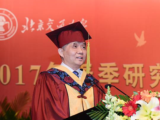 今天,對(duì)于北京交通大學(xué)和各位畢業(yè)生來講,都是一個(gè)值得紀(jì)念的日子!今天,北京交通大學(xué)2017屆的189位博士生、2115位碩士生即將走出校園,開始人生新的旅程。在此,我謹(jǐn)代表北京交通大學(xué),向順利完成學(xué)業(yè)的畢業(yè)生同學(xué)們致以熱烈的祝賀,向長期辛勤工作在研究生培養(yǎng)一線的各位老師致以衷心的感謝,向辛勤培育你們的父母、親人致以崇高的敬意!