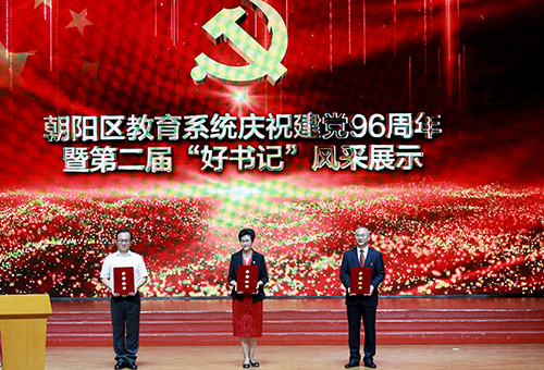人民網(wǎng)北京6月30日電 (趙英梓)今天,朝陽區(qū)教工委、教委舉辦了朝陽區(qū)教育系統(tǒng)慶祝建黨96周年暨第二屆“好書記”風(fēng)采展示活動(dòng)。望京實(shí)驗(yàn)學(xué)校黨總支書記黃翔、朝陽區(qū)教育網(wǎng)絡(luò)信息中心黨支部書記和向東、芳草地國際學(xué)校黨總支書記穆英三位書記,獲得了2017朝陽區(qū)教育系統(tǒng)“好書記”榮譽(yù)稱號。